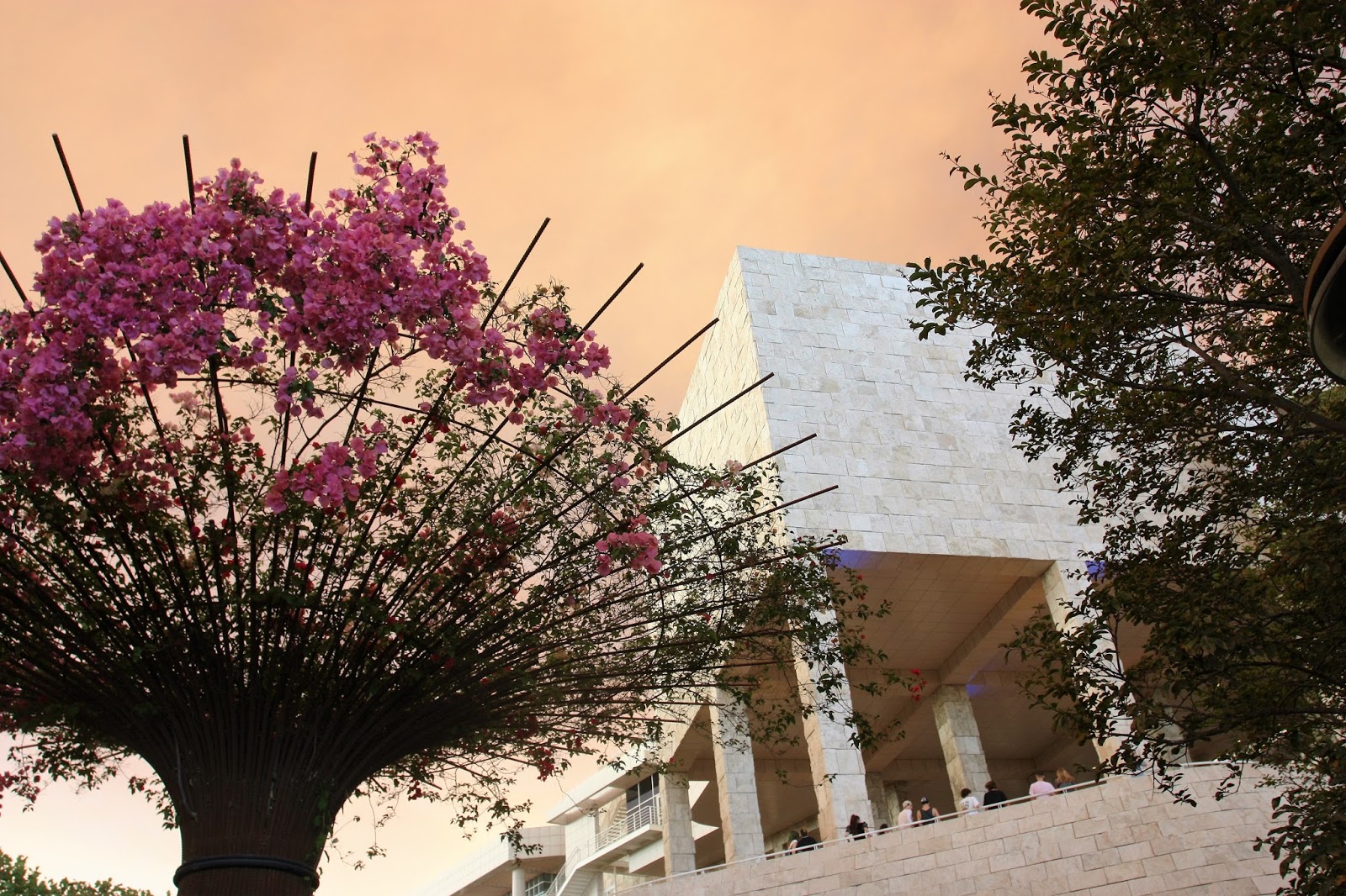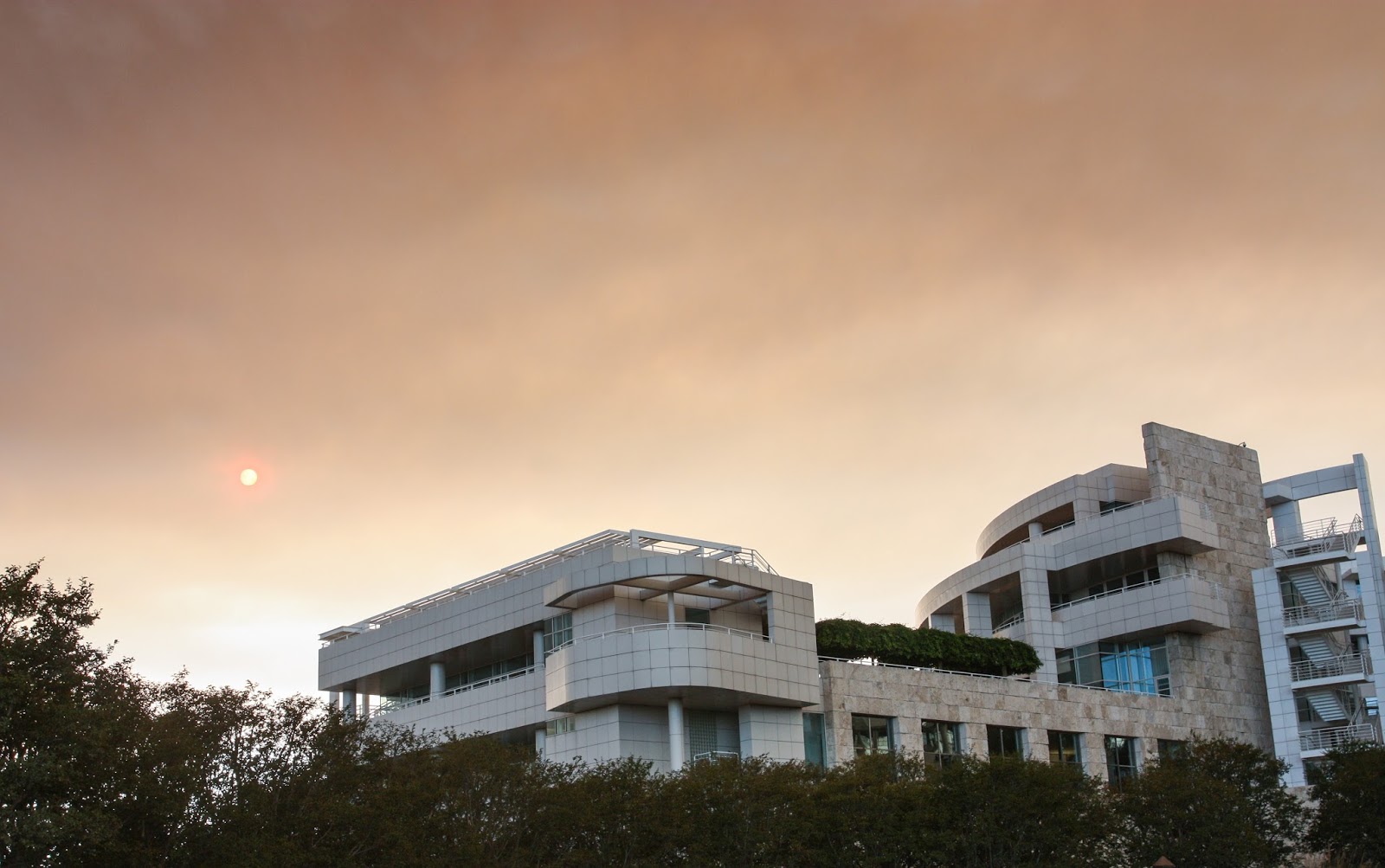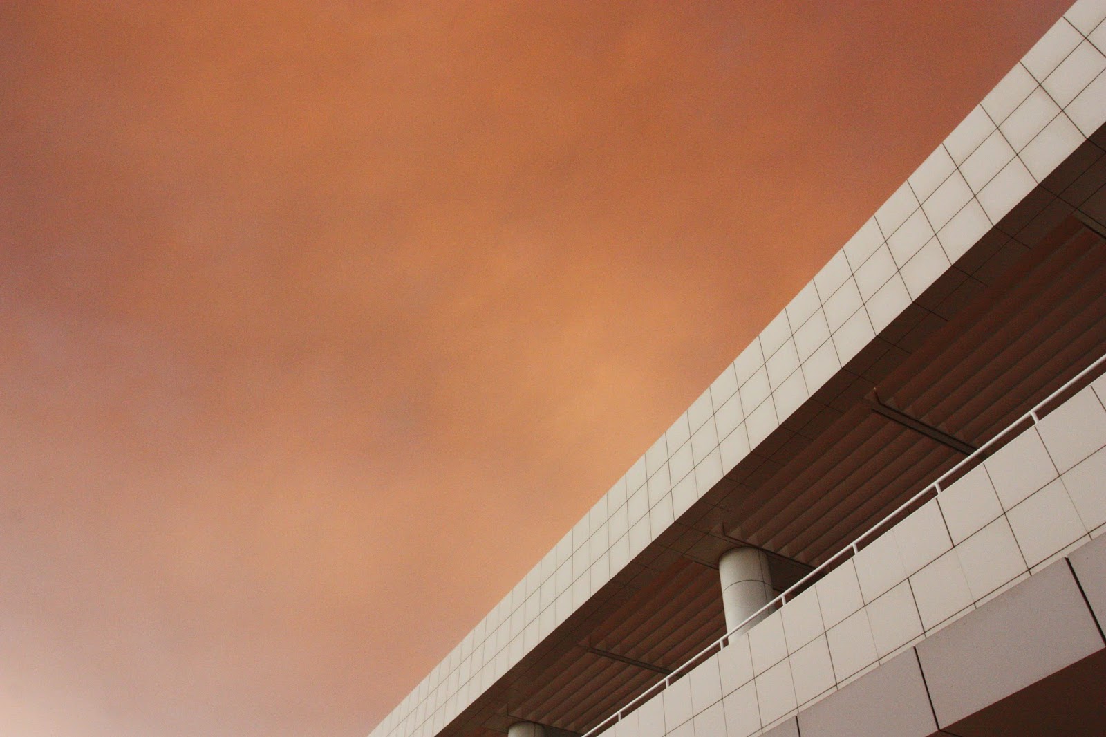 Getting ready for a nice day out at Getty Center, I didn’t know that a crazy sand fire in Santa Clarita had taken over half of Los Angeles’s sky. It filled the air with ash and turned its ever sunny blue sky into a combination of orange, red and black. As scary as wild fires are, yesterday’s weather made for an insane photography opportunity. The Getty Center is situated on the top of a hill, overlooking the city and the 405 highway. At the top of the hill we could clearly see the ocean front, where the weather was normal and gorgeous, but directly above us it was a completely different world.